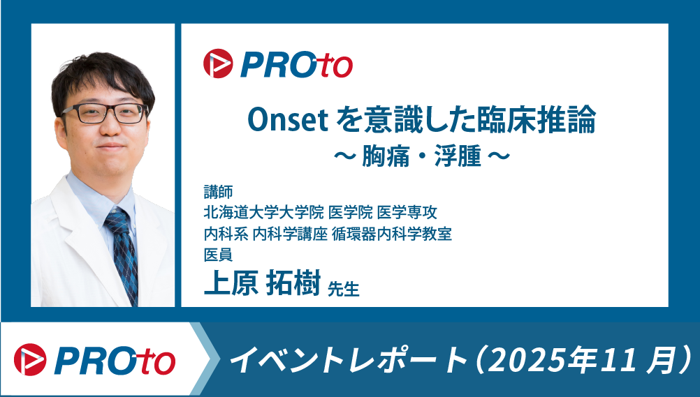今回のPROtoでは、循環器領域を専門とする上原拓樹先生をお迎えし、
