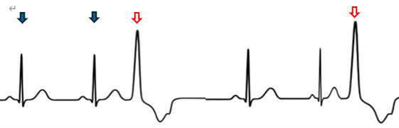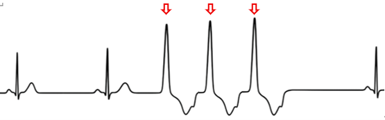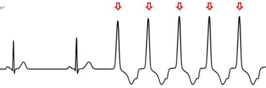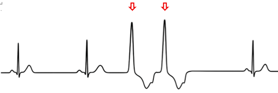 洞結節以外の場所から異所性の興奮が発生し、伝導速度の遅い固有心筋を伝導して心室全体を興奮させます。これが本来の収縮に先立って心臓を興奮させることにより発生します。